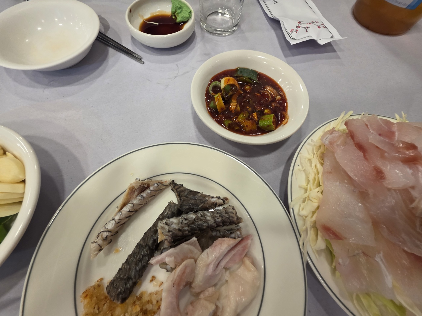 - 식감 차이: 광어나 우럭이 '탱글함(쫄깃함)'이 무기라면, 민어는 **'부드러움과 고소함'**이 무기입니다. 특히 껍질과 부레는 다른 생선에서는 느낄 수 없는 독보적인 별미입니다.