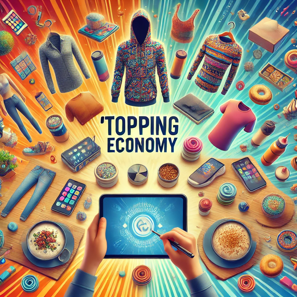 "토핑경제(Topping Economy)"는 소비자가 제품에 자신만의 개성을 더해 맞춤형 경험을 만들어가는 소비 트렌드를 의미합니다. ‘토핑’이라는 단어에서 느껴지듯, 음식의 토핑처럼 상품이나 서비스를 기본 형태 그대로 소비하는 것이 아니라, 자신이 원하는 요소를 더하거나 바꾸면서 개별화된 상품을 만들어내는 개념입니다. 이러한 트렌드는 단순한 소비를 넘어 제품을 개인화하고, 사용자 경험을 풍부하게 만들며, 개인의 취향과 개성이 반영된 제품을 제공함으로써 소비자가 더욱 주체적으로 소비에 참여하도록 합니다.