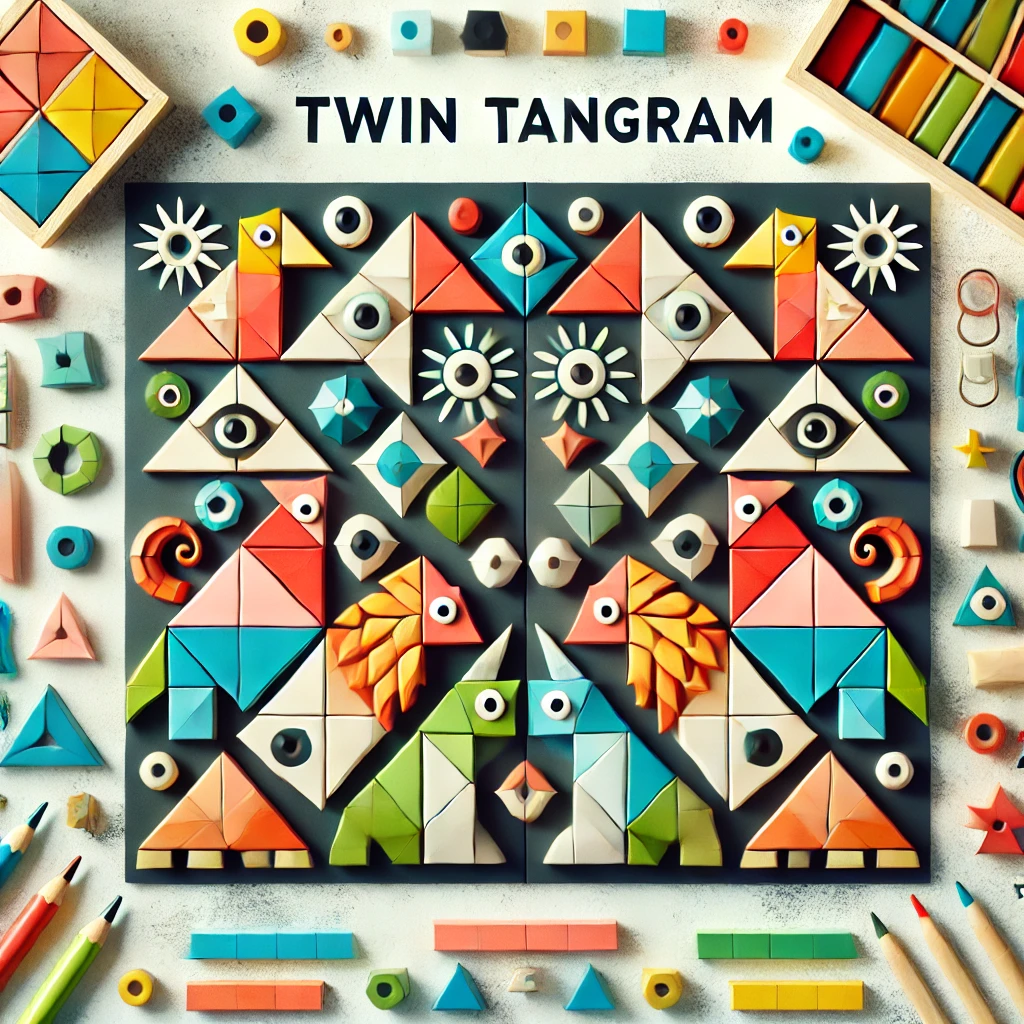 트윈 탱그램(Twin Tangram)은 퍼즐과 창의적 놀이를 결합한 두 개의 탱그램 세트를 활용한 게임이나 활동입니다. 기존의 탱그램을 확장한 개념으로, 두 개의 동일한 탱그램 세트를 이용해 좀 더 복잡하고 다양한 형태를 만들어내는 것이 핵심입니다.